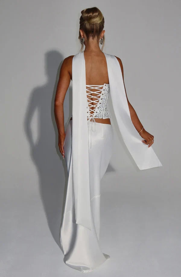 Add a touch of celestial glamour to your wardrobe with the Stardust Corset. Made from structured satin, this strapless corset is embellished with dense multi-shape rhinestones that sparkle with every movement. Boning in the bodice creates a sculpted silhouette, while the lace-up back ensures a custom fit. Perfect for elevating any evening look with effortless sophistication.